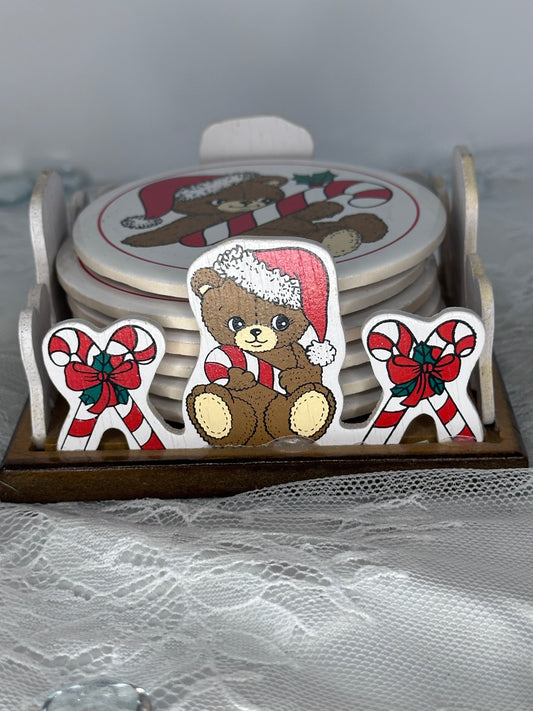 1988 House of Lloyd Teddy Bear Coaster Set of 6 Teddy Bear Coaster with Wooden Crate