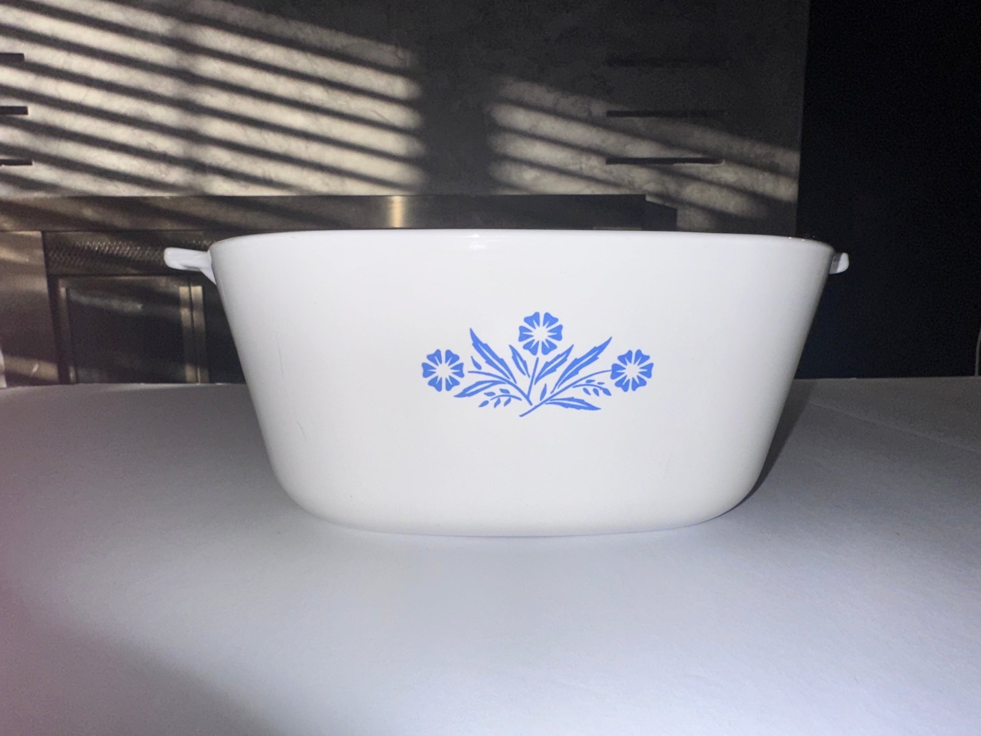 Expertly crafted with durable, heat-resistant materials, the Corningware blue flower casserole dish holds up to 1 and a half quarts of your favorite dishes. Enjoy even heating and easy clean-up with this timeless piece, perfect for everyday meals or special occasions.