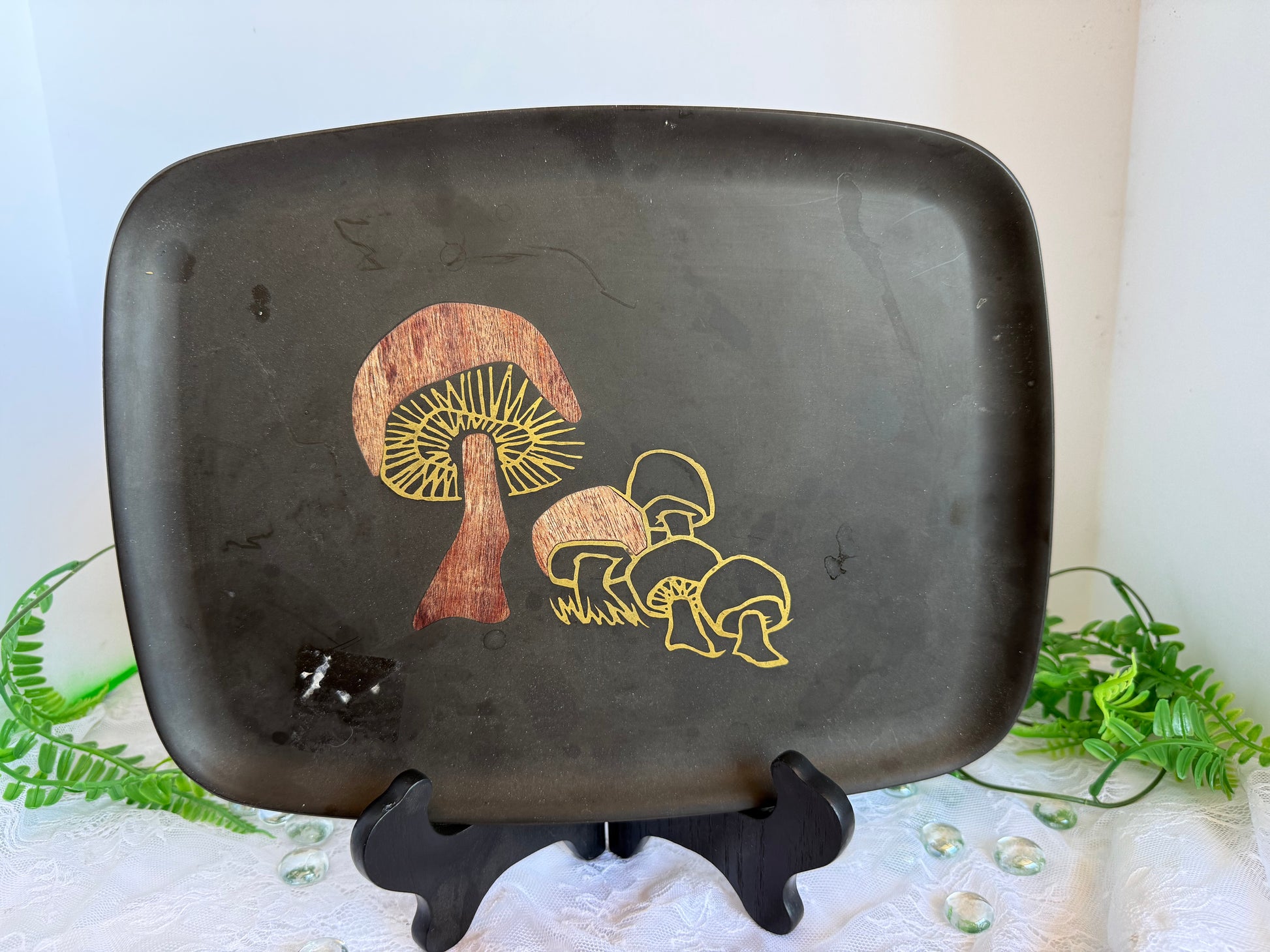 Introducing the Couroc mushroom tray, a stunning addition to your home decor. With its unique design and durable construction, this tray is perfect for serving and displaying. Made with exquisite craftsmanship, this tray is sure to impress. Elevate your hosting game today with the Couroc mushroom tray.