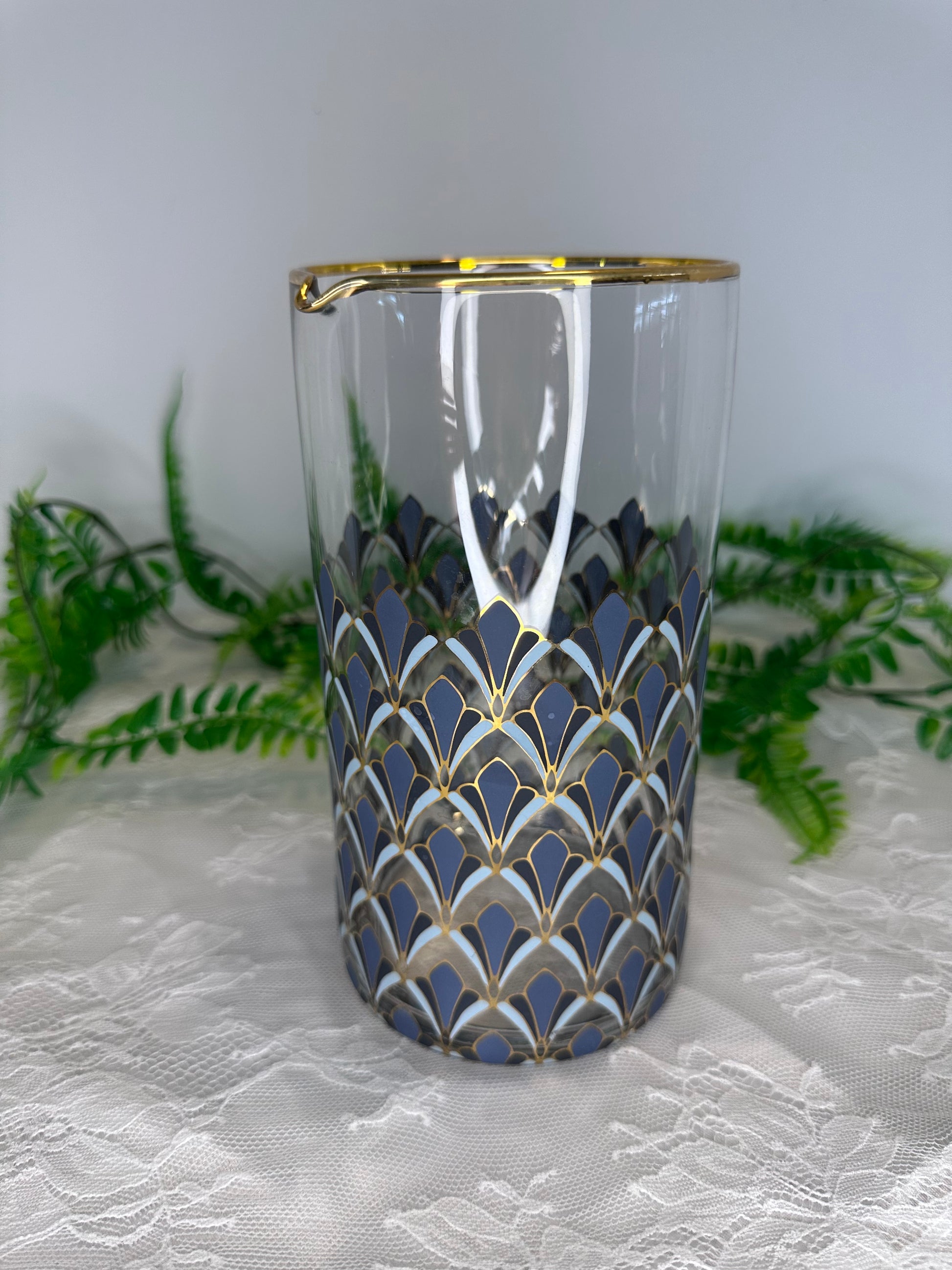 Introducing the Gable Art Deco Cocktail Mixing Glass, the perfect addition to any home bar. Crafted with a stunning art deco design, this glass not only adds a touch of elegance to your drinks, but also ensures easy and accurate measurements with its precise markings. Elevate your cocktails with this sleek and functional mixing glass.