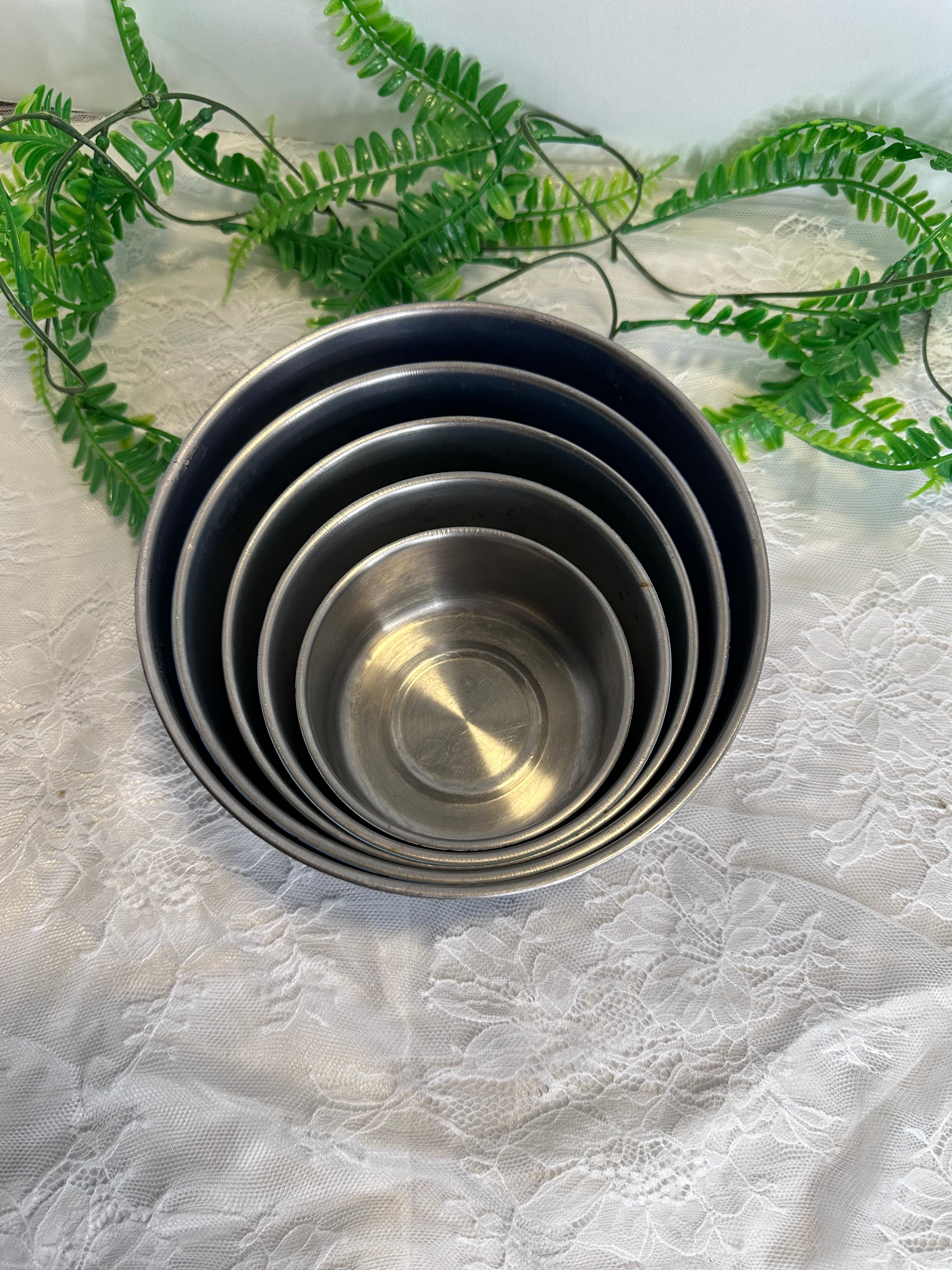These nesting bowls are expertly crafted from durable metal and come in a sleek blue color. Perfect for organizing your kitchen and saving storage space, these bowls are functional and stylish. With their sturdy construction and vibrant hue, they are a must-have for any kitchen.