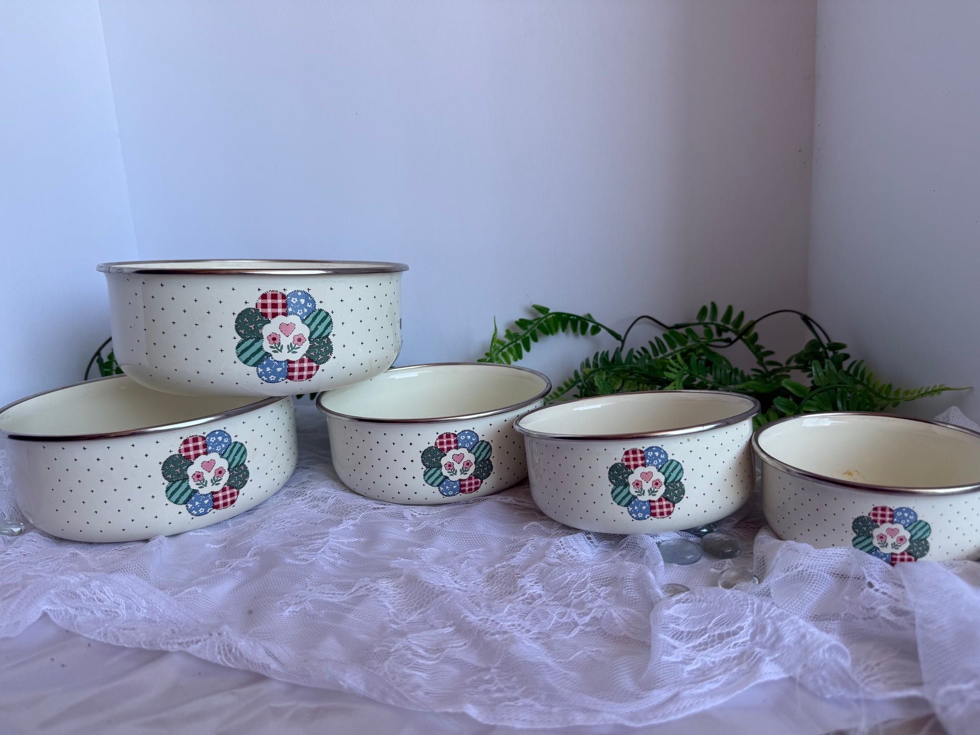 Enhance your kitchen decor with our vintage "Home Sweet Home" nesting bowls. These bowls not only add a touch of nostalgia but are also functional and space-saving. Perfect for baking and serving your favorite dishes, these bowls will bring a sense of warmth and comfort to any home.