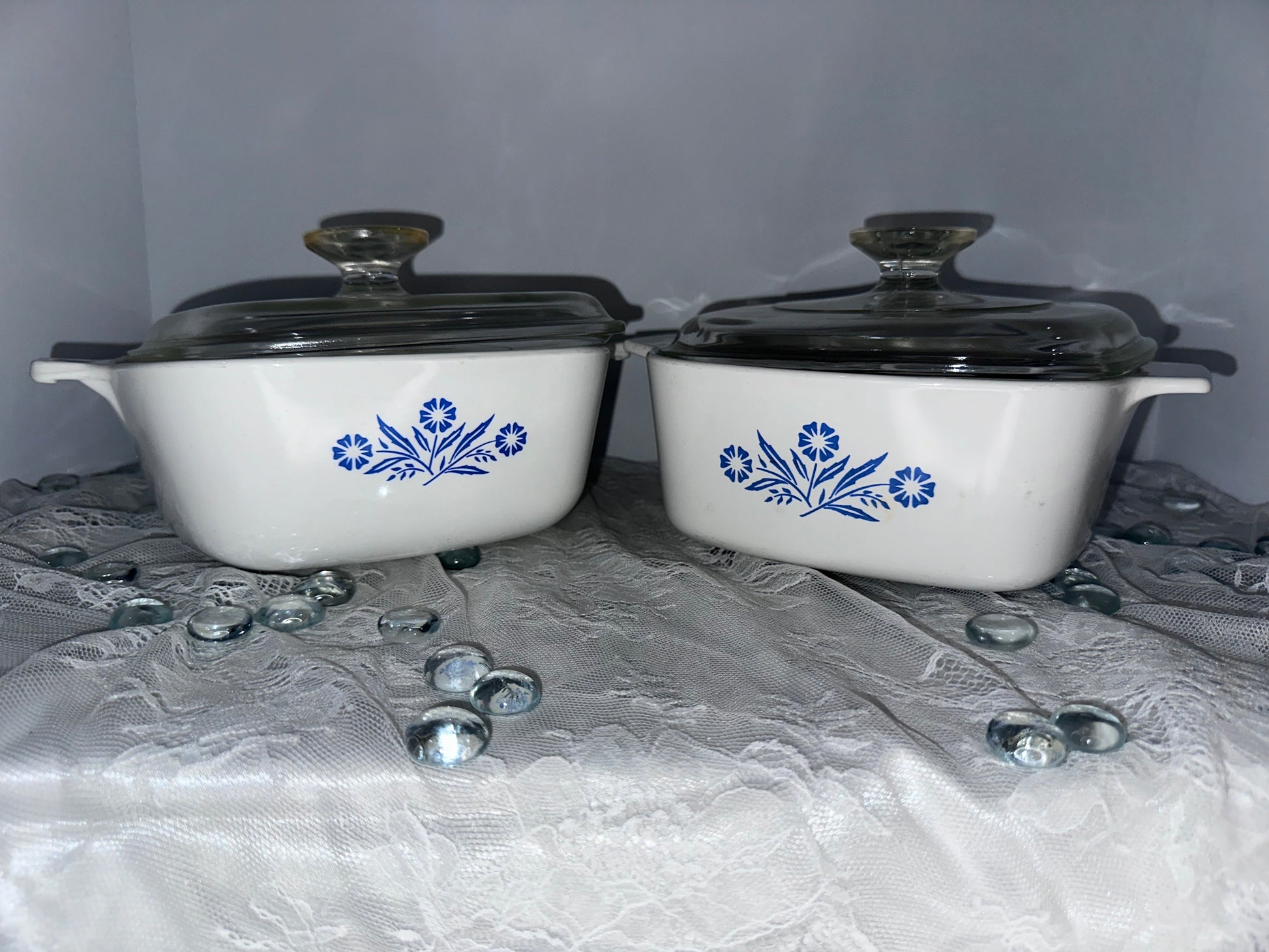 Bake, store, and serve with ease using this set of 2 blue cornflower baking dishes by Corningware. Each dish holds 1.5 quarts and comes with a lid. Perfect for cooking and storing your favorite dishes. Make meal prep a breeze with this versatile set!