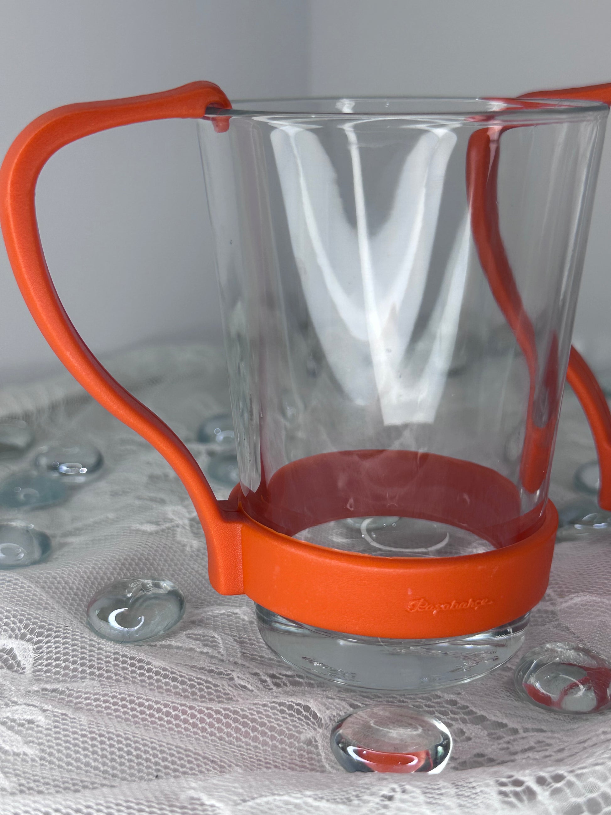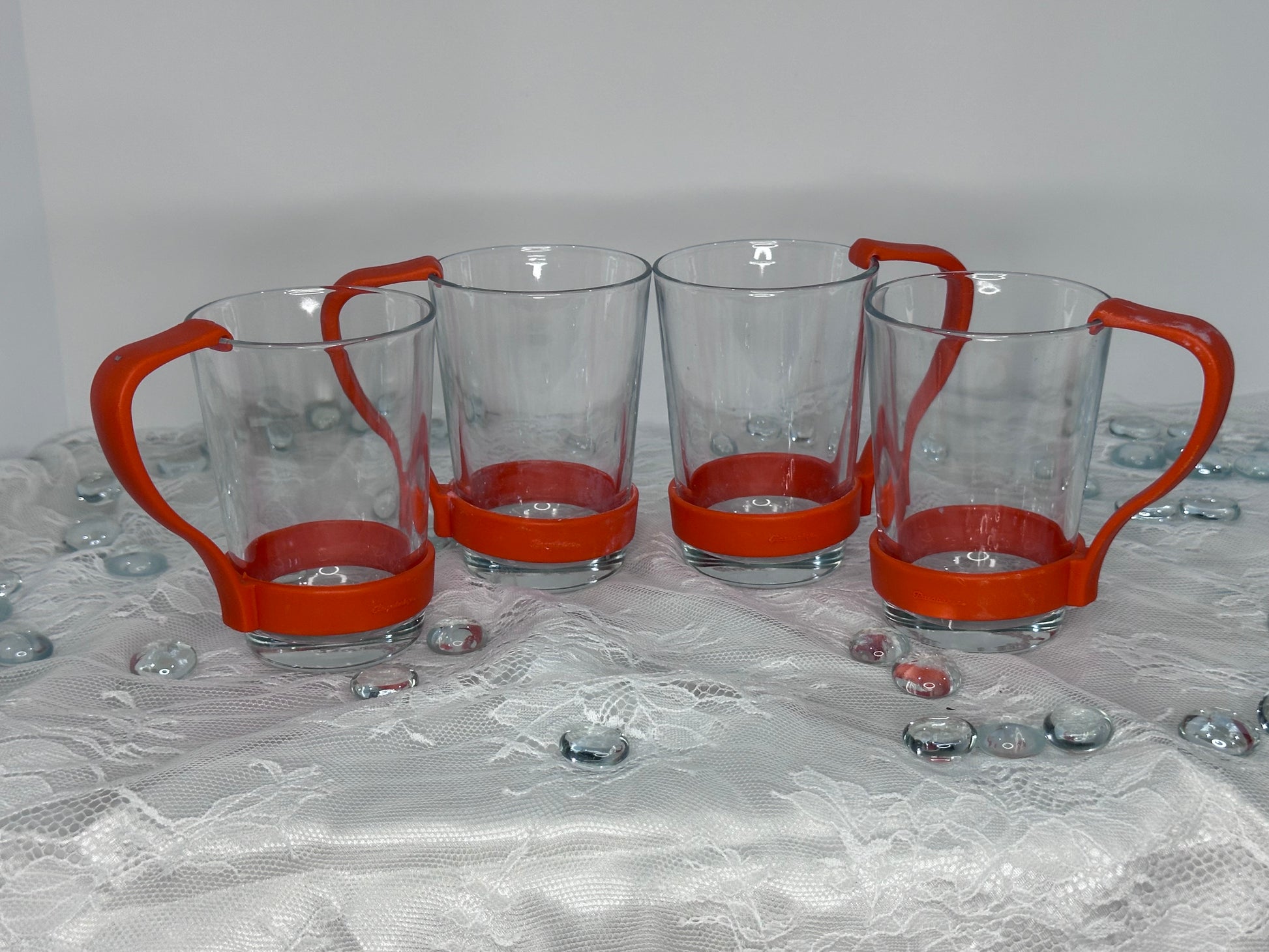 Upgrade your drinkware collection with this set of 4 vintage glass cups with plastic handles. The sturdy construction and ergonomic design provide a comfortable grip, perfect for daily use or special occasions. Elevate your drinking experience with these timeless and versatile cups.