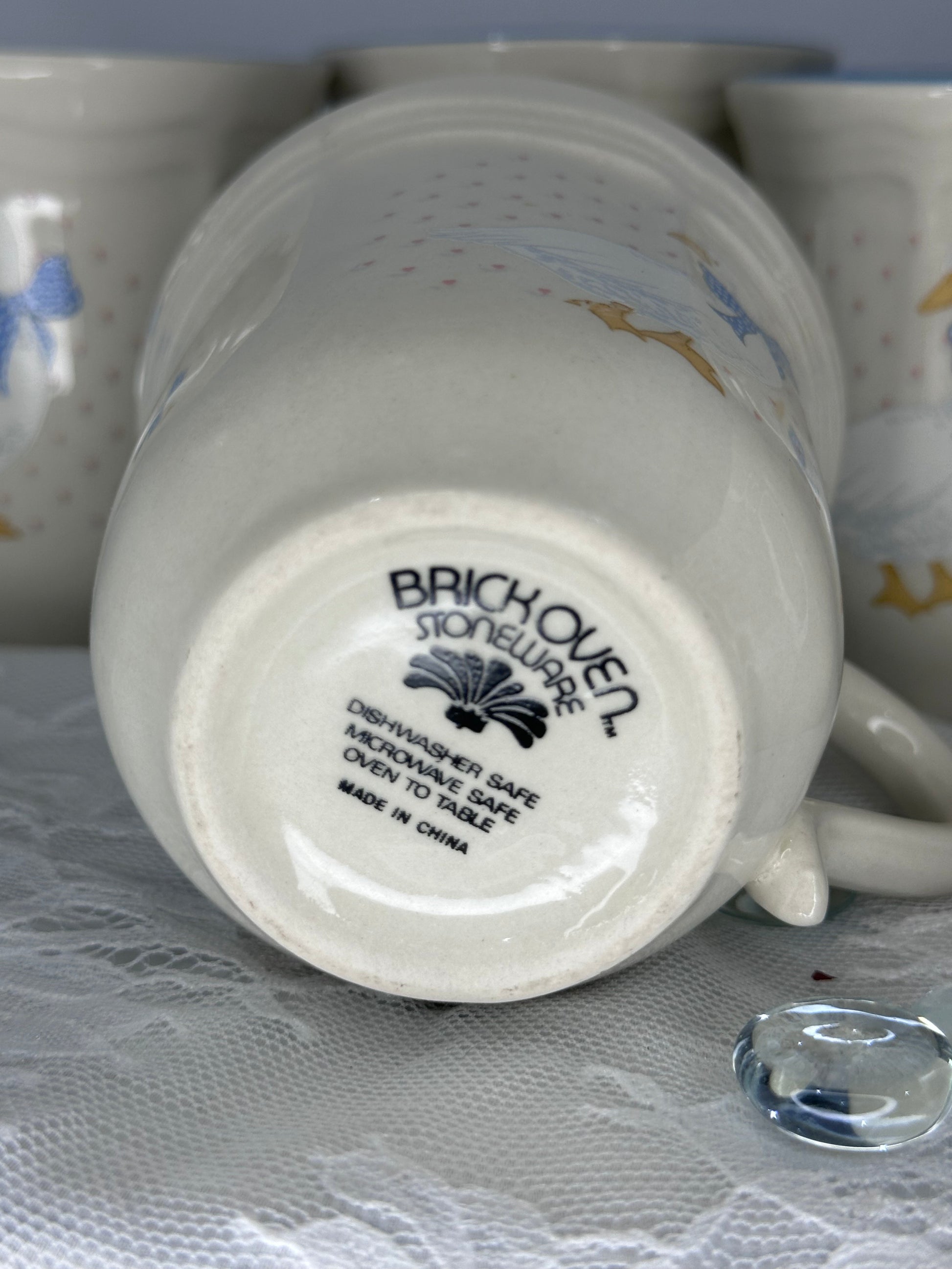 Set of 5 Vintage Aunt Rhody Blue Goose Brickoven Stoneware Mugs Coffee Tea Cups