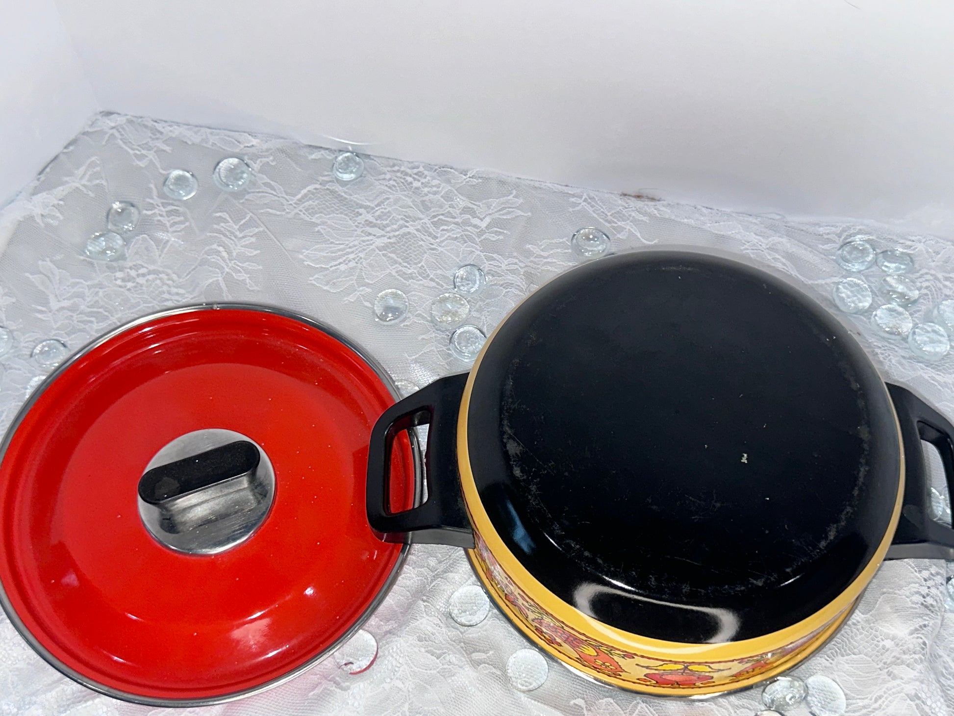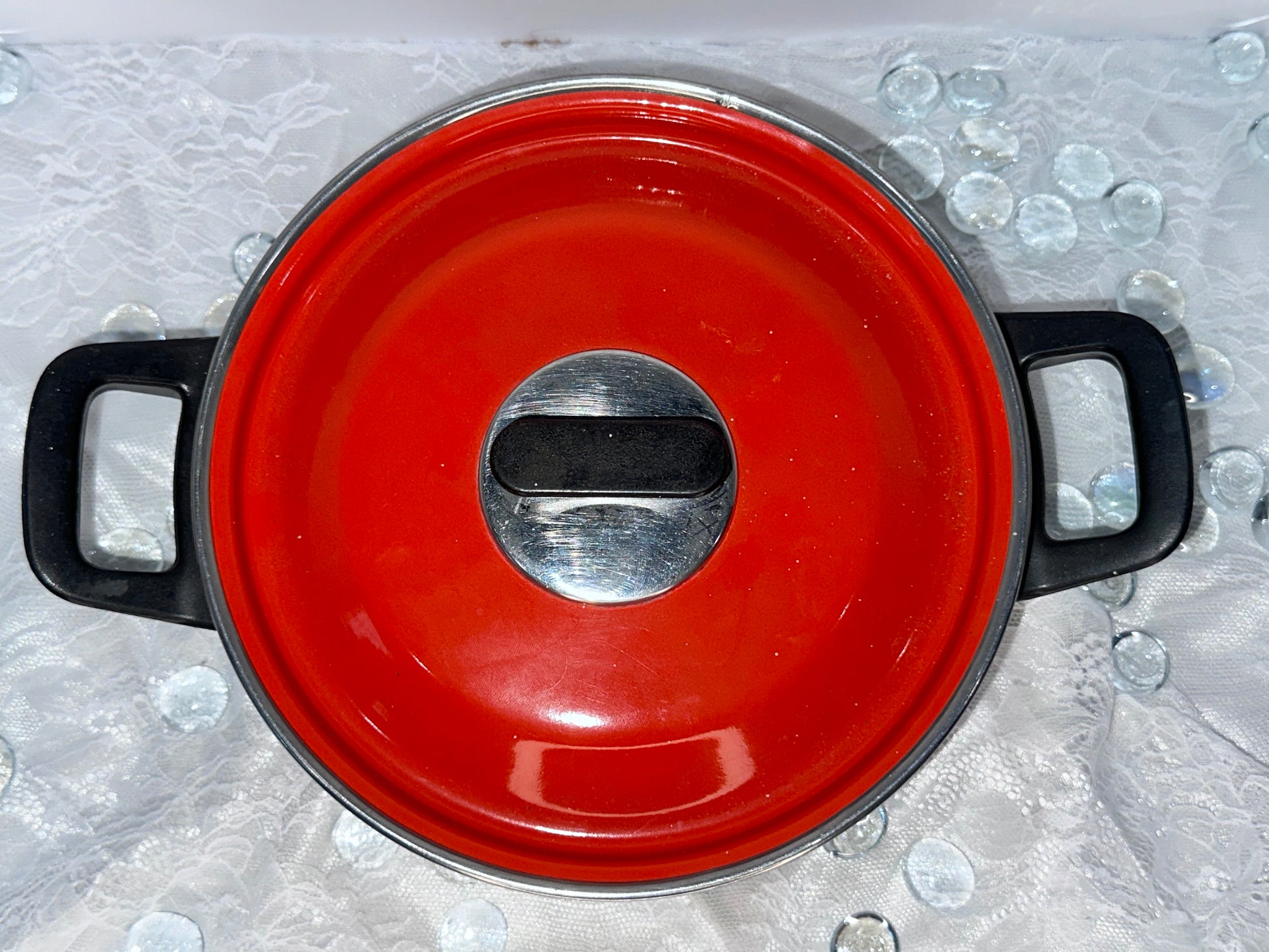 The Vintage Enamel MidCentury Fancipan is a beautifully crafted, mid-century style cookware that will elevate your cooking experience. Made from high-quality enamel, it's not only durable but also easy to clean. With its timeless design and functionality, this pan is perfect for any modern kitchen.