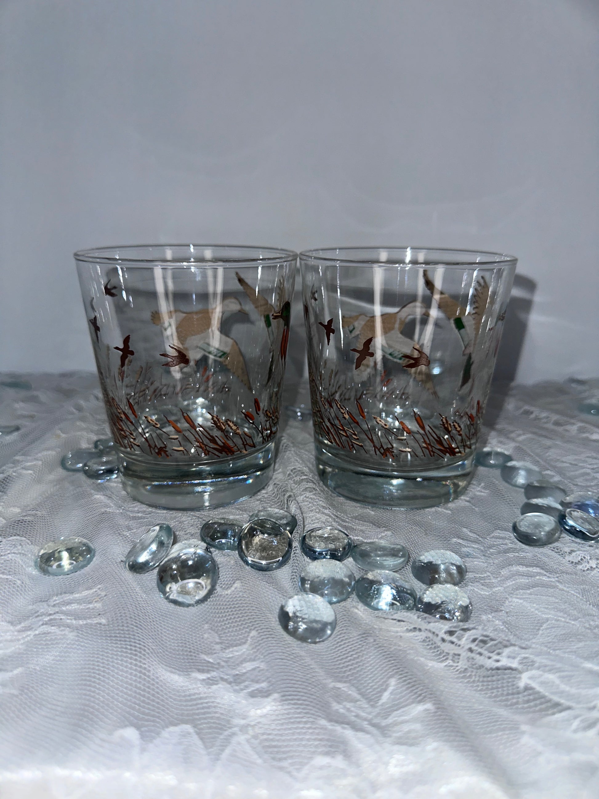 Vintage Libbey Mallard Duck Trophy Hunting Lodge Hunter Whiskey Beverage Glasses