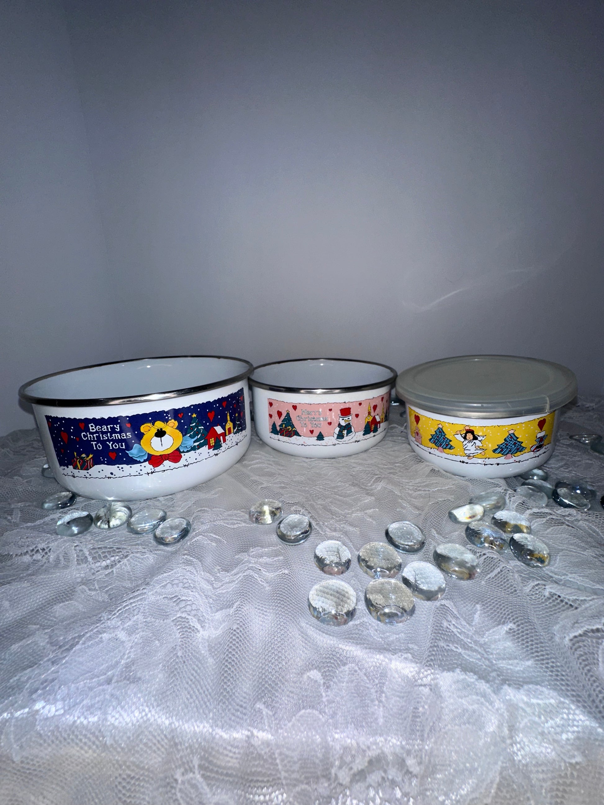 Vintage Nested Enamelware Christmas Serving Bowls Set of 3 Holiday Serving Bowls Graduated Sizes