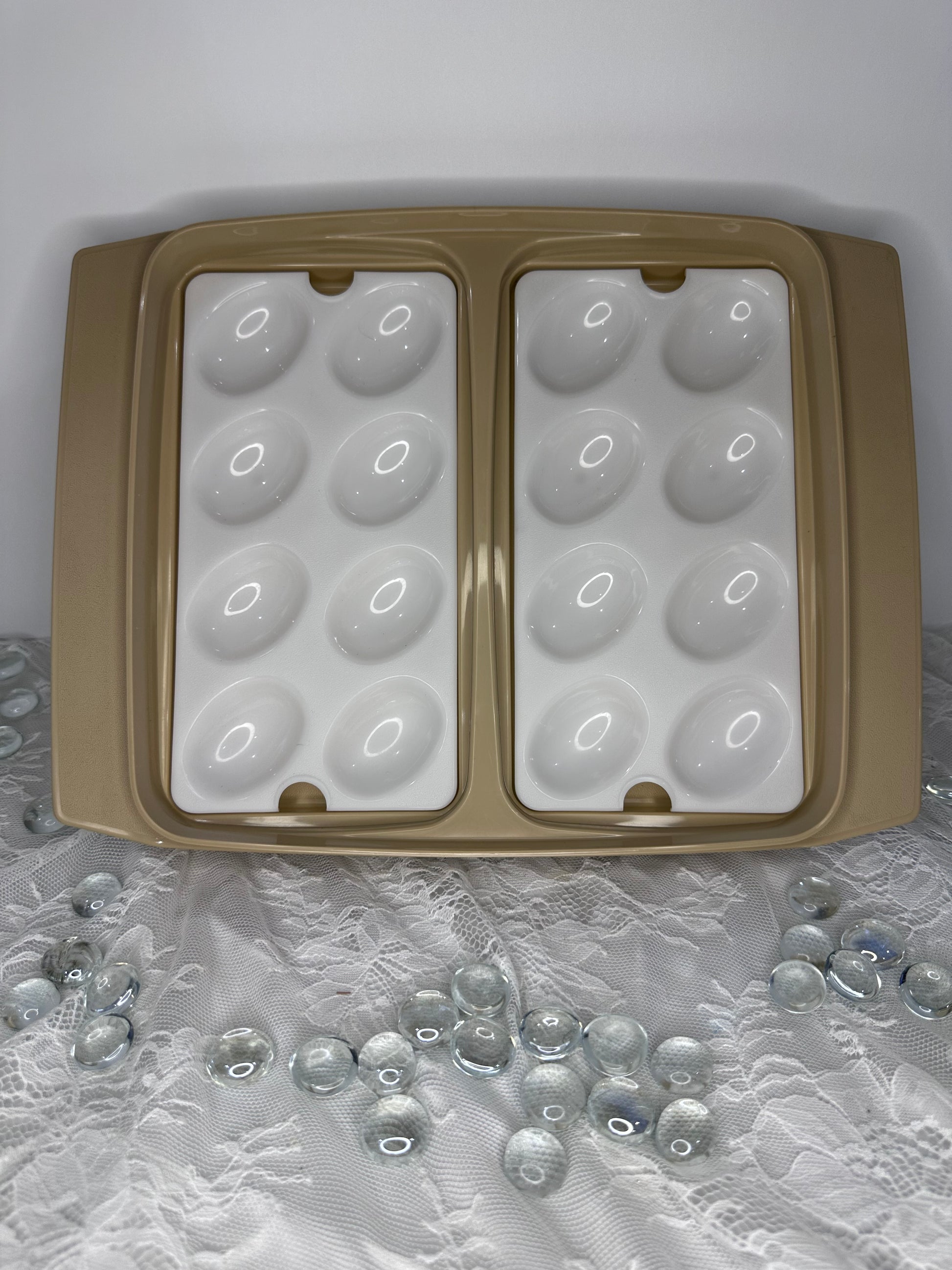 Vintage Tupperware Tan Deviled Boiled Egg Carrier Storage Container